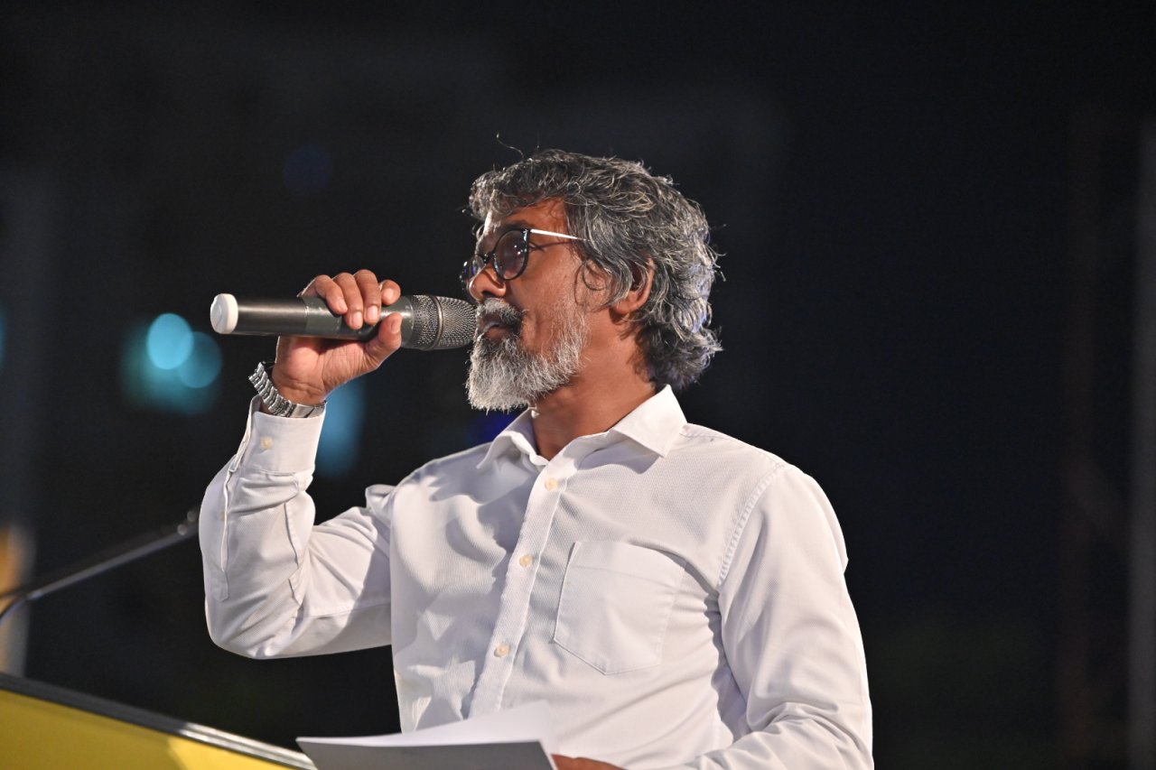 އެމްޑީޕީން ރޭ ކާނިވާ ސަރަހައްދުގައި ބޭއްވި ޖަލްސާގައި އެމްޑީޕީގެ ޗެއާޕާސަން ފައްޔާޒް އިސްމާއިލް ވާހަކަދައްކަވަނީ. ފޮޓޯ: އެމްޑީޕީ