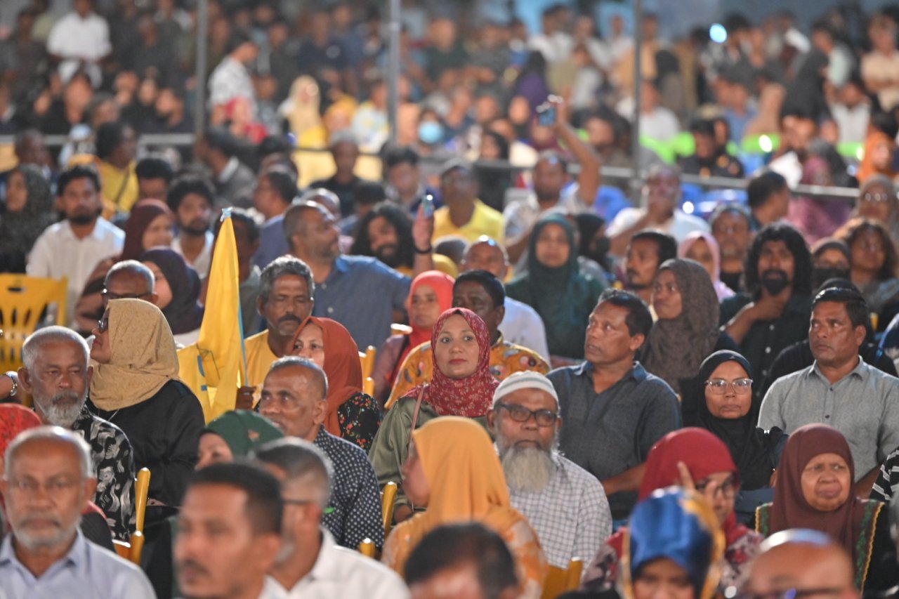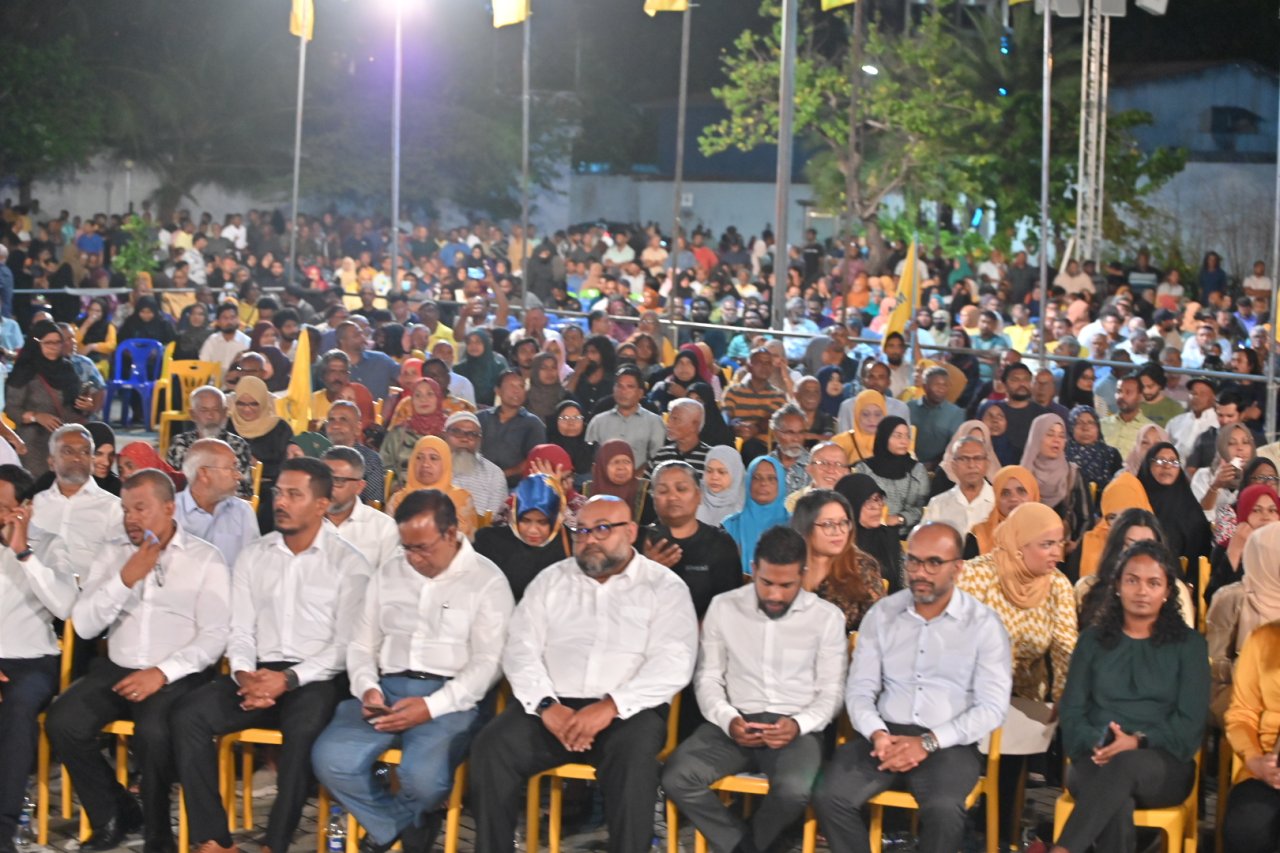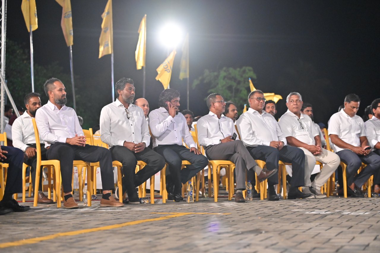އެމްޑީޕީން ރޭ ކާނިވާ ސަރަހައްދުގައި ބޭއްވި ޖަލްސާގައި އެމްޑީޕީގެ އިސްވެރިންނާއި މަޖްލިސް މެމްބަރުންތަކެއް ބައިވެރިވަނީ. ފޮޓޯ: އެމްޑީޕީ