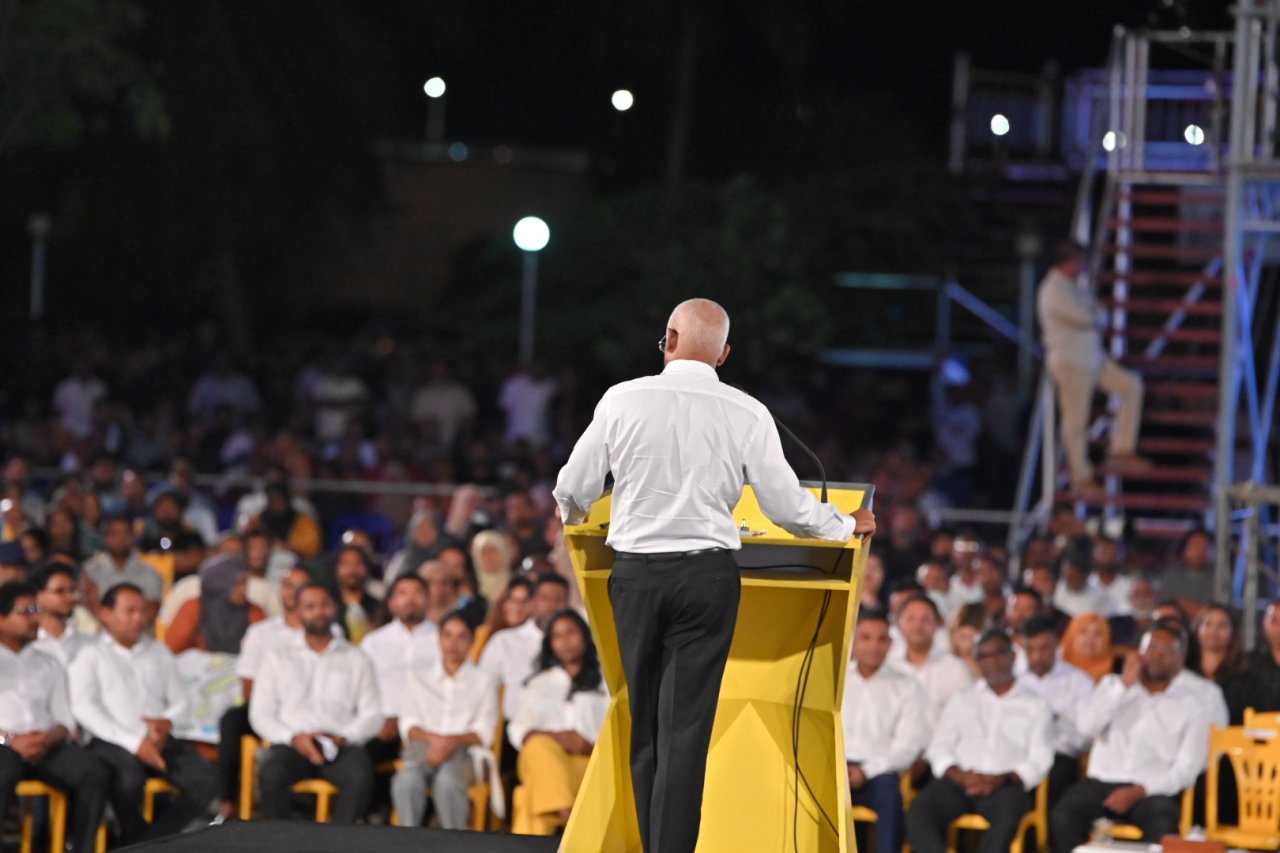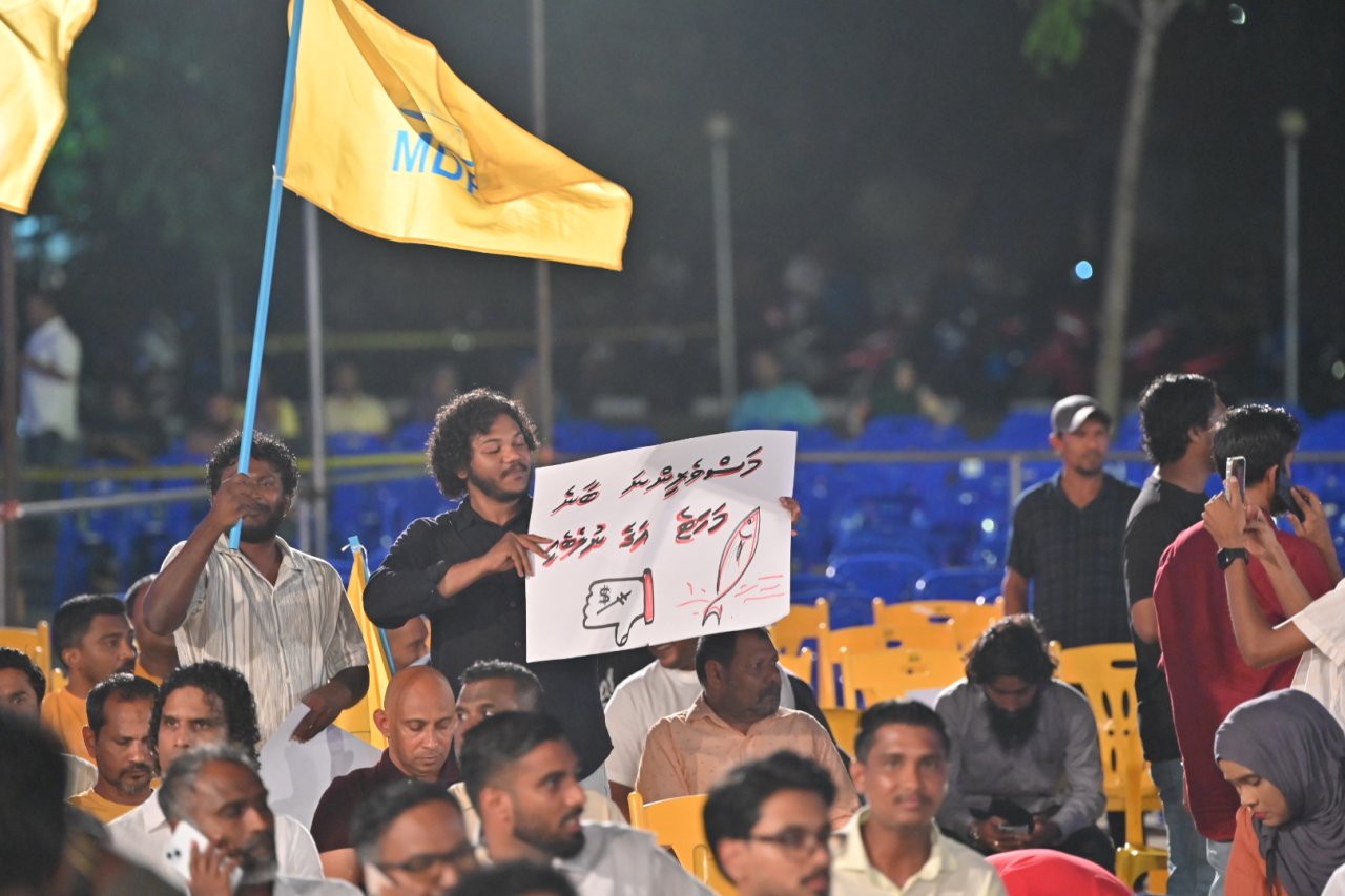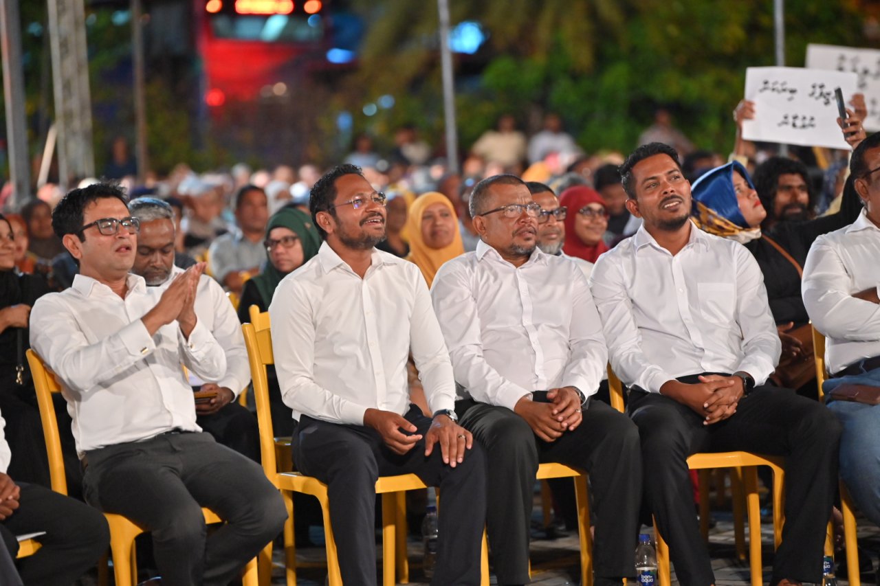 އެމްޑީޕީން ރޭ ކާނިވާ ސަރަހައްދުގައި ބޭއްވި ޖަލްސާގައި އެމްޑީޕީގެ އިސްވެރިންނާއި މަޖްލިސް މެމްބަރުންތަކެއް ބައިވެރިވަނީ. ފޮޓޯ: އެމްޑީޕީ